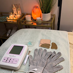A natural, no-tox Botox alternative for lifted, glowing skin This treatment is for you if you want a fresher, “face lift” look without injections or downtime. I combine gentle microcurrent technology (7E MyoLift) with a sculpting gua sha tool to lift, tone, and relax facial muscles while supporting your skin’s own collagen and glow. Microcurrent uses low-level currents, similar to the body’s own, to energize cells and support collagen and elastin, helping improve firmness, fine lines, and overall radiance. Gua sha releases fascia and boosts lymphatic drainage to de-puff, smooth, and sculpt your natural contours. Together, they create a powerful pro-aging, Botox alternative ritual. This facial is ideal if you feel your face looks tired, puffy, or less defined, or if you want a gentle way to support your skin as you age. Results are subtle and natural-looking, so you still look like you—just more lifted, relaxed, and glowy. What happens in your Gua Sha Microcurrent Lift Facial: Cleanse & prep – gentle cleanse and skin prep so microcurrent and active ingredients absorb better. Microcurrent lifting – precise passes along the jawline, cheeks, brows, and neck to lift, firm, and improve circulation. Gua sha sculpting – microcurrent-conductive gua sha releases tension, reduces puffiness, and defines cheekbones and jawline. Targeted focus – extra time on your main concerns (eyes, forehead lines, jawline, or neck) for a more sculpted, awake look. Nourishing finish – serums and oils to support barrier health and long-lasting glow. Benefits: Visible lifting and toning of facial contours Softer fine lines and expression lines Improved firmness, texture, and bounce Less puffiness and more natural definition Deep relaxation and tension release A natural, pro-aging, no-tox Botox alternative Pricing: $120 – 45-minute session $550 – series of 5 sessions Microcurrent works best in a series, as results are cumulative. Many women love a weekly or bi-weekly series for deeper, longer-lasting lifting and firming, then maintenance sessions every few weeks to keep their glow. Book your Gua Sha Microcurrent Lift Facial as a stand-alone treatment or add it to your favorite facial for the ultimate pro-aging experience.